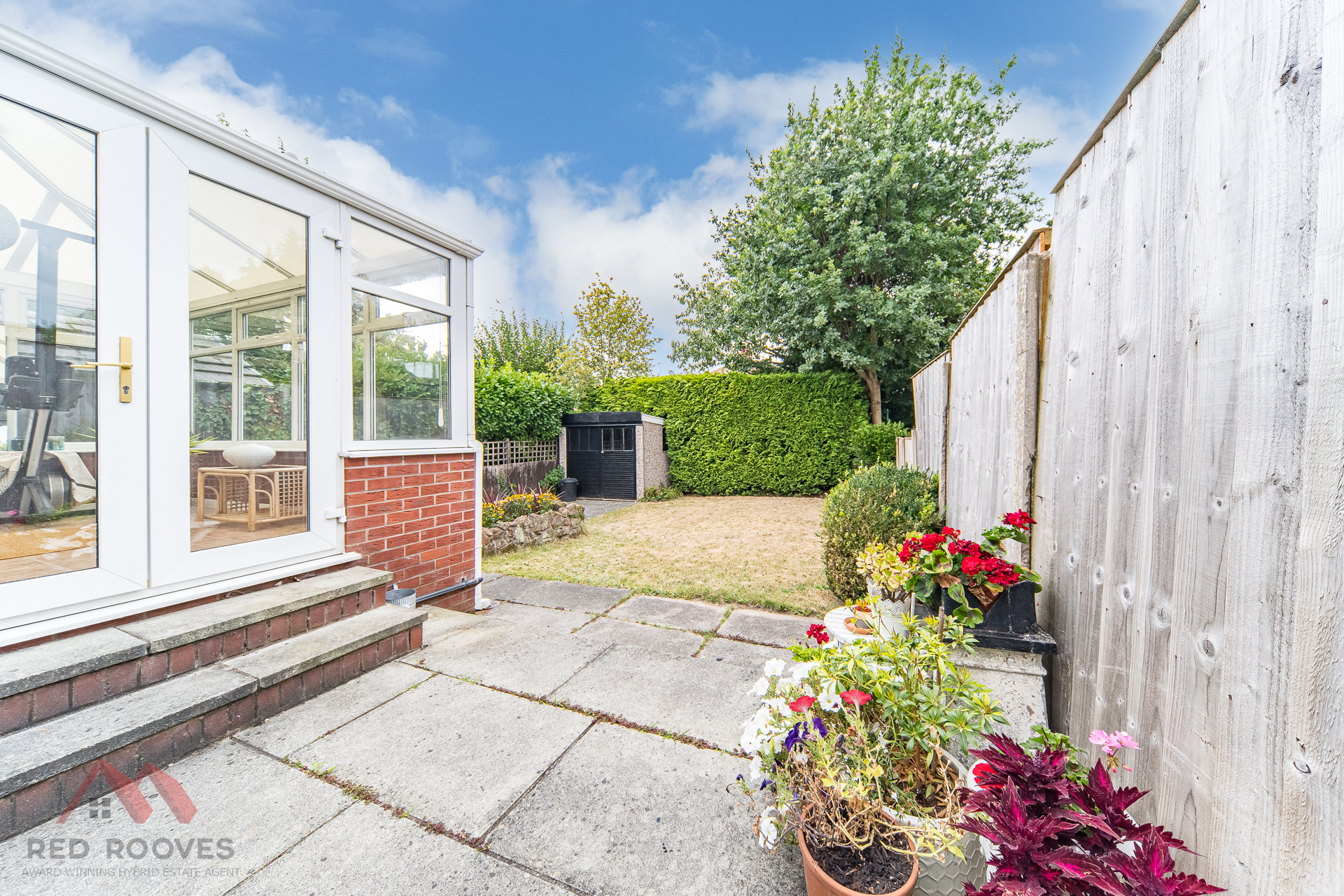 The garden is a good size, private and benefits from paved access around the perimeter of the house to the large detached single-sized garage. The garden gets afternoon sun making it ideal for evening meals outside.