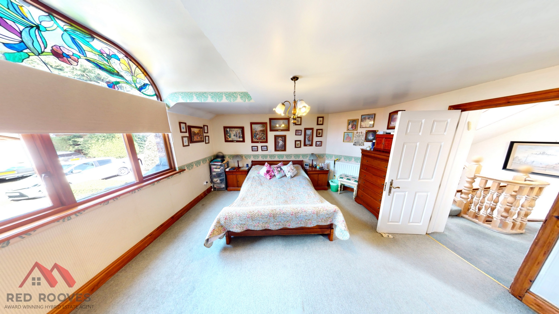 * Solid wood door with stained glass feature with surround matching stained glass