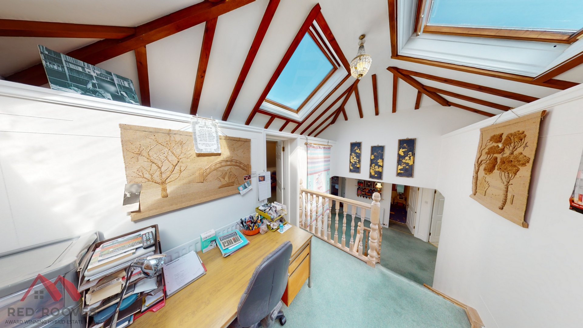 To the second floor the large landing area with its three Velux windows is currently utilised as office space and also provides access to bedroom five, which is carpeted and of a single size and benefits from a shower ensuite.