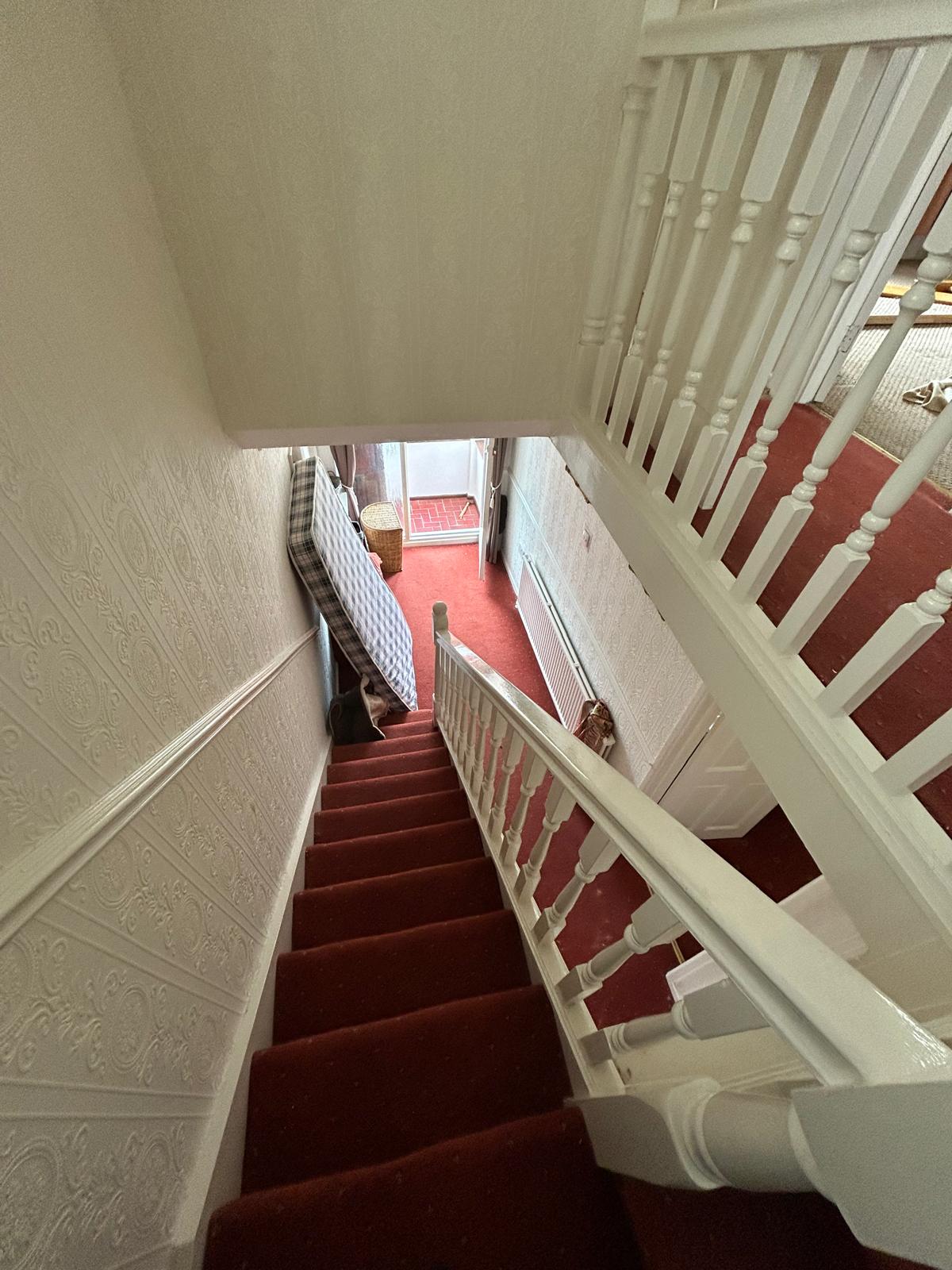 To the first floor the carpeted landing provides access to all first-floor rooms. Bedrooms one and two are of a double size and bedroom three of a single size. The bathroom conatins a walk in shower, low level w/c and hand wash basin.