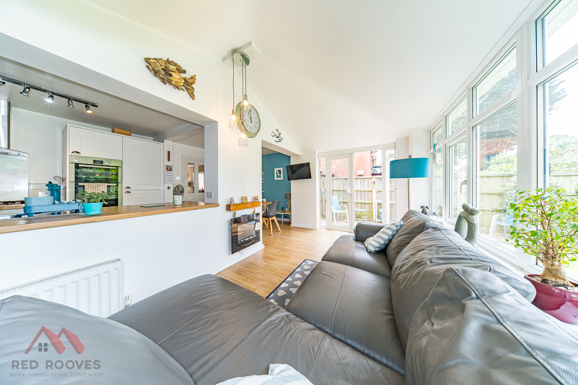 * Open plan with kitchen and sunroom